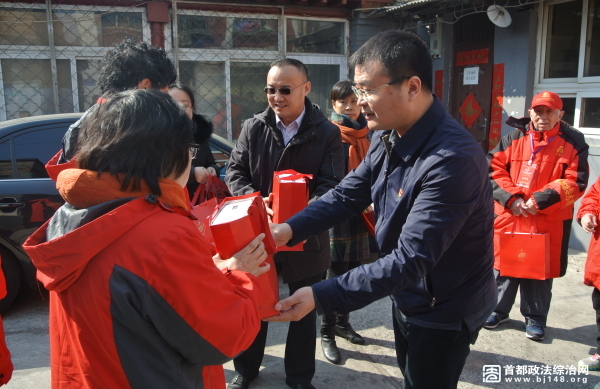 3月16日上午,政法委老干部处领导来到北京市东城区北新桥街道北官厅藏经馆社区居委会,看望慰问全国“两会”期间积极参与安全保卫工作的市民政局老同志。