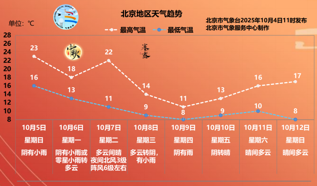 预计8号到9号北京还会迎来一次明显降雨过程,气温将再降一截,凉意更浓。请关注临近天气预报及气温变化情况,提前将厚实的衣物备好。
