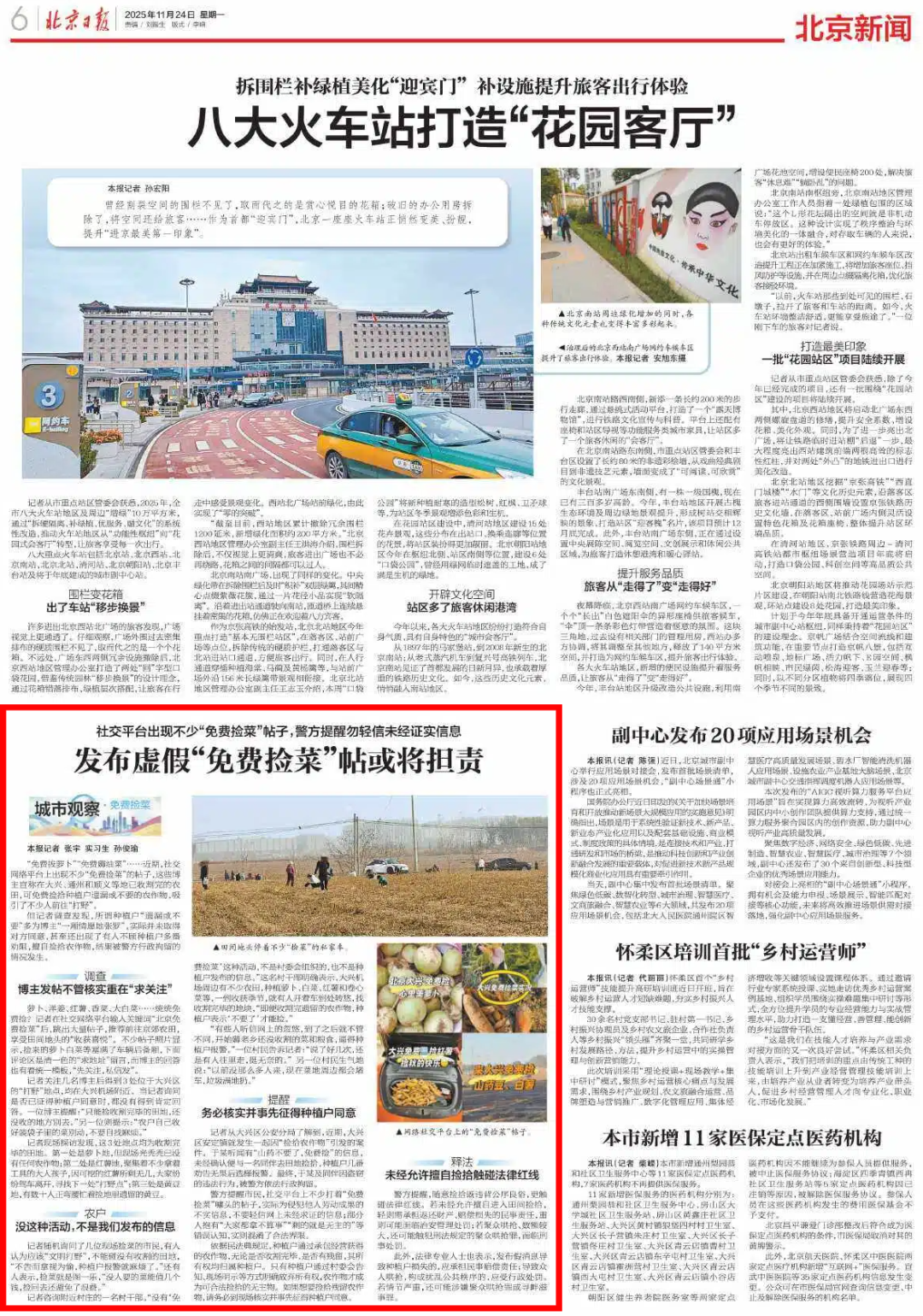 记者从大兴区公安分局了解到,近期,大兴区安定镇就发生一起因“捡拾农作物”引发的案件。于某听闻有“山药不要了,免费捡”的信息,未经确认便与一名同伴去田地捡拾,种植户几番劝告无果后选择报警。最终,于某及同伴因盗窃的违法行为,被警方依法行政拘留。警方提醒市民,社交平台上不少打着“免费捡菜”噱头的帖子,实际为侵犯他人劳动成果的不实信息,不要轻信网上未经求证的信息;部分人抱有“大家都拿不算事”“剩的就是无主的”等错误认知,实则混淆了合法界限。