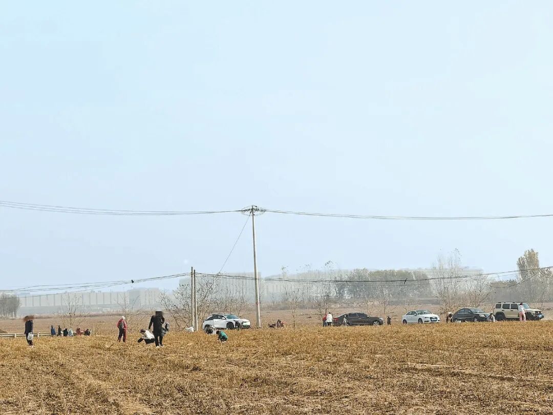 记者现场探访发现,这3处地点均为收割完毕的田地。第一处是萝卜地,但现场光秃秃已没有任何农作物;第二处是红薯地,聚集着不少拿着工具的大人孩子,因可挖的红薯所剩无几,大家纷纷驾车离开,寻找下一处“打野点”;第三处是黄豆地,有数十人正弯腰忙着捡地里遗留的黄豆。