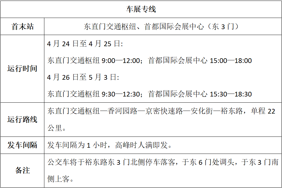 东直门交通枢纽 ↔ 首都国际会展中心(东3门)