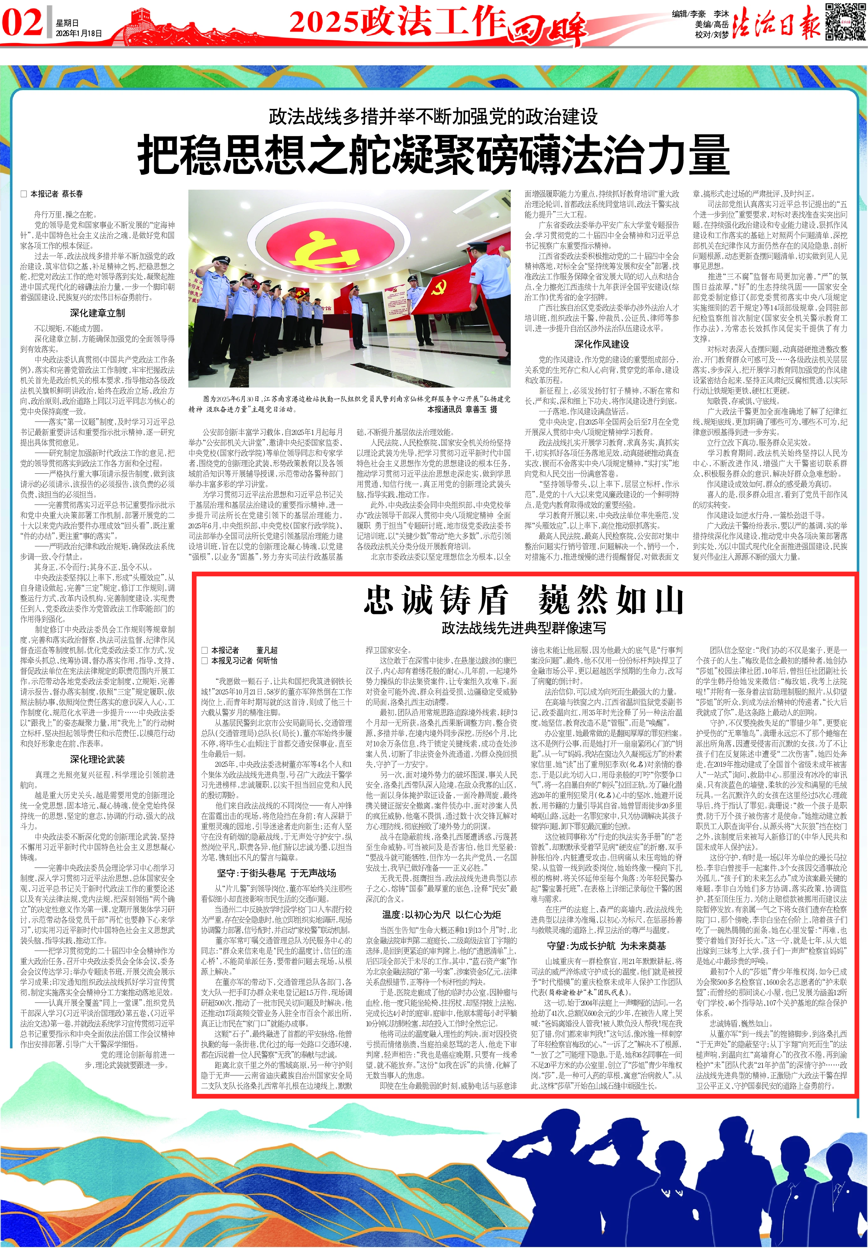 从董亦军“到一线去”的铿锵脚步,到洛桑扎西“于无声处”的隐蔽坚守;从丁宇翔“向死而生”的法槌声响,到温向红“高墙育心”的孜孜不倦,再到渝检护“未”团队代表“21年护苗”的深情守护……政法战线先进典型的精神,正激励广大政法干警在捍卫公平正义、守护国泰民安的道路上奋勇前行。