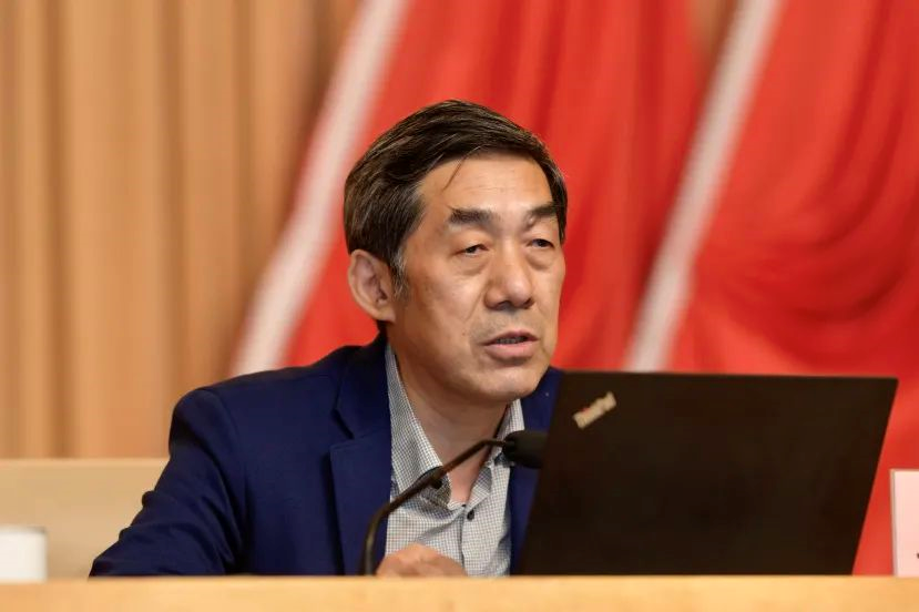 图为党史学习教育市委宣讲团成员、北京市委前线杂志社总编辑李明圣作专题辅导报告