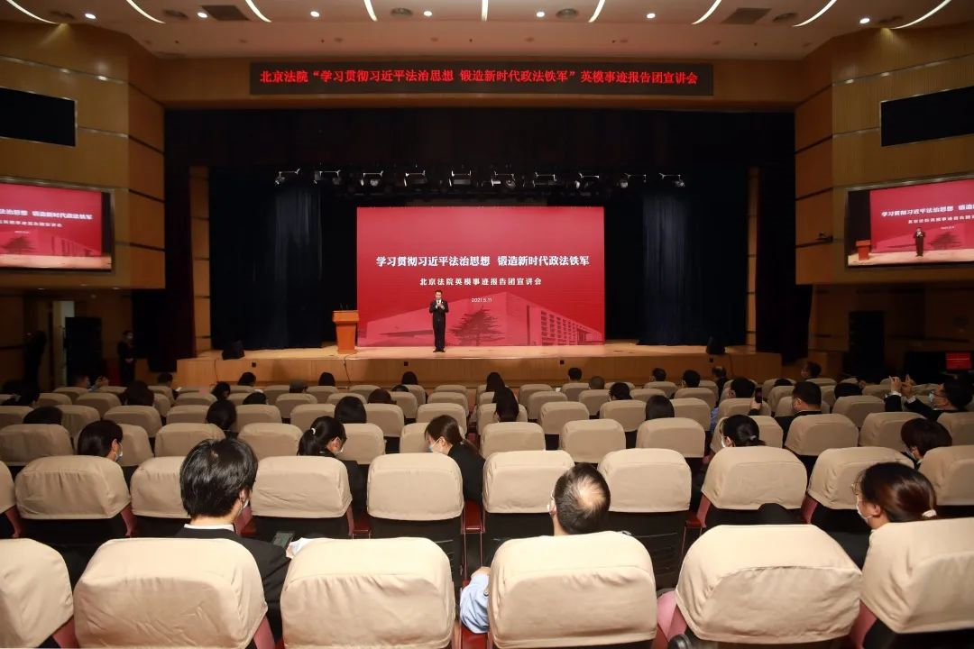 为持续深入开展党史学习教育和队伍教育整顿,大力弘扬政法英模精神,展现政法队伍良好形象,激励和引领干警忠诚履职、公正司法。2021年5月11日,北京法院“学习贯彻习近平法治思想,锻造新时代政法铁军”英模事迹报告团在西城法院巡回宣讲。