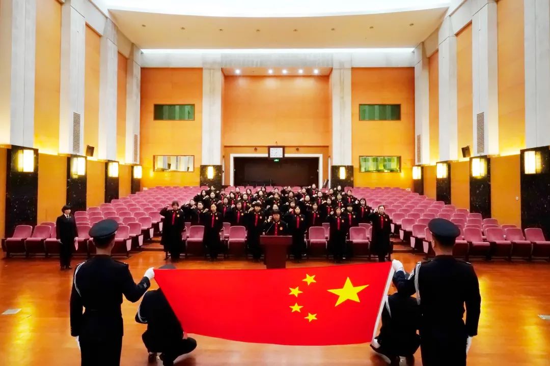 昌平法院组织全体女法官举行宪法宣誓仪式。四名司法警察身着礼服、列队整齐,护卫国旗入场,全体女法官行注目礼,全场奏唱国歌。随后,北京市三八红旗奖章获得者、北京市审判业务专家,昌平法院党组成员、副院长邢颖作为领誓人,手抚宪法,领诵誓词;全体女法官高举右拳,跟诵誓词。宣誓仪式庄严神圣、鼓舞人心。