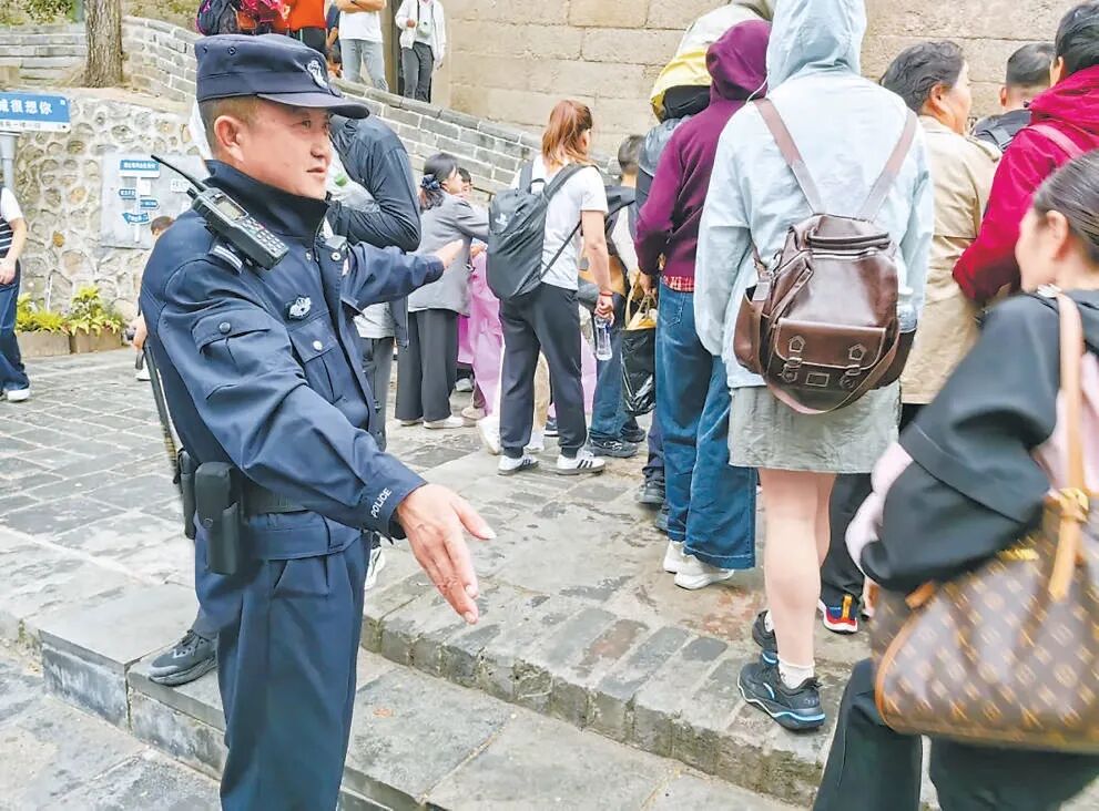 假日期间,八达岭派出所与长城管理处实时沟通,根据客流情况,采取缓进快出、远端分流等措施,对城上城下易聚集点位进行临时限流管控,形成闭环、防止人流对冲,保障游客安全。