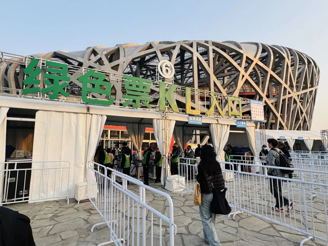 傍晚5时许,鸟巢周边已人头攒动。歌迷手持对应座席颜色的电子票,循着红、黄、蓝、绿四色指引,有序向各自检票口行进。