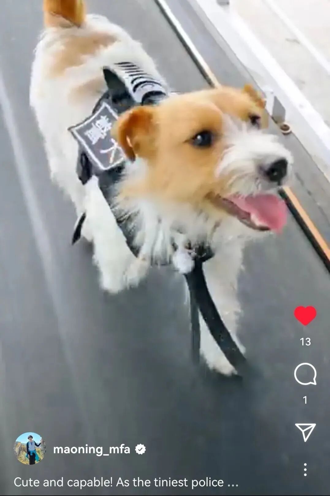 甚至外交部发言人毛宁也在她的海外社交媒体上分享了如一训练的视频,并注文“Cute and capable!”(可爱又能干!)。