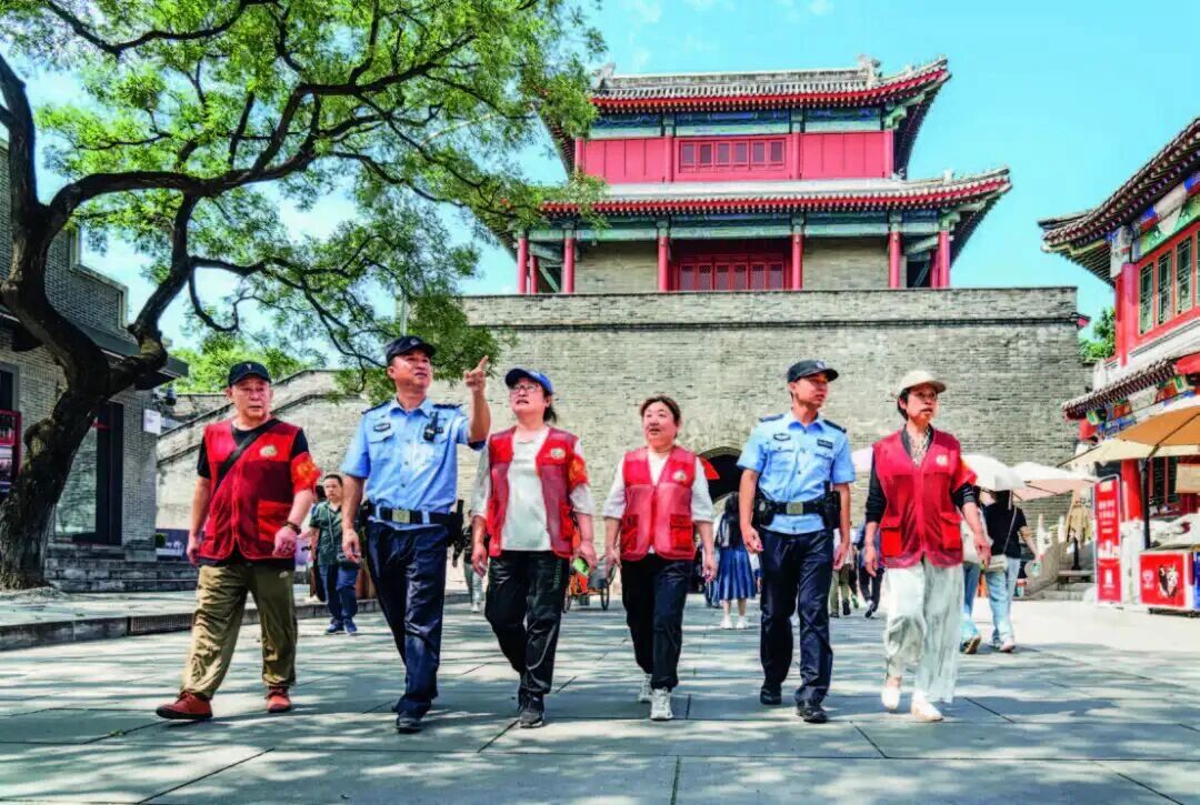 公安民警带领“宛然以平”志愿服务队在辖区巡逻