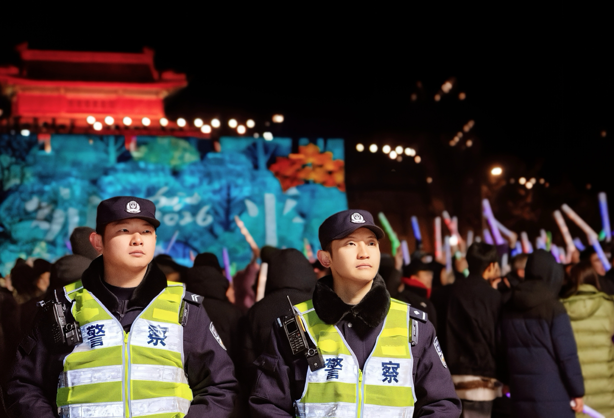 值守在宛平城的灯影里,灯光秀映亮古城墙,倒计时的欢呼声从广场传来,肩上的警灯已从2025年闪烁至2026年,时间从不停息,而我们依然站在这里,守护绝不缺席!