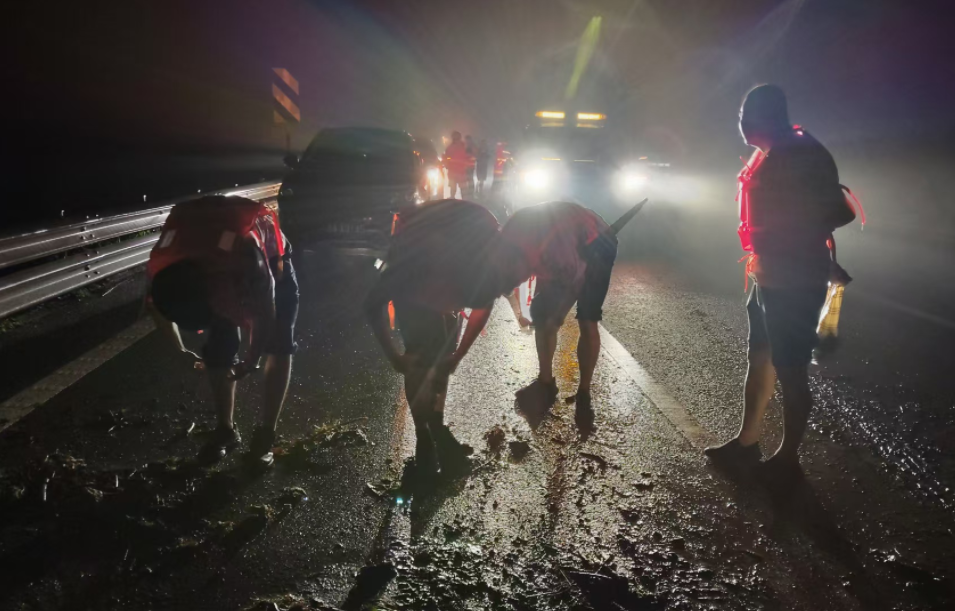 当晚8点半左右,张迎春接到辖区某路段发生塌方的警情。