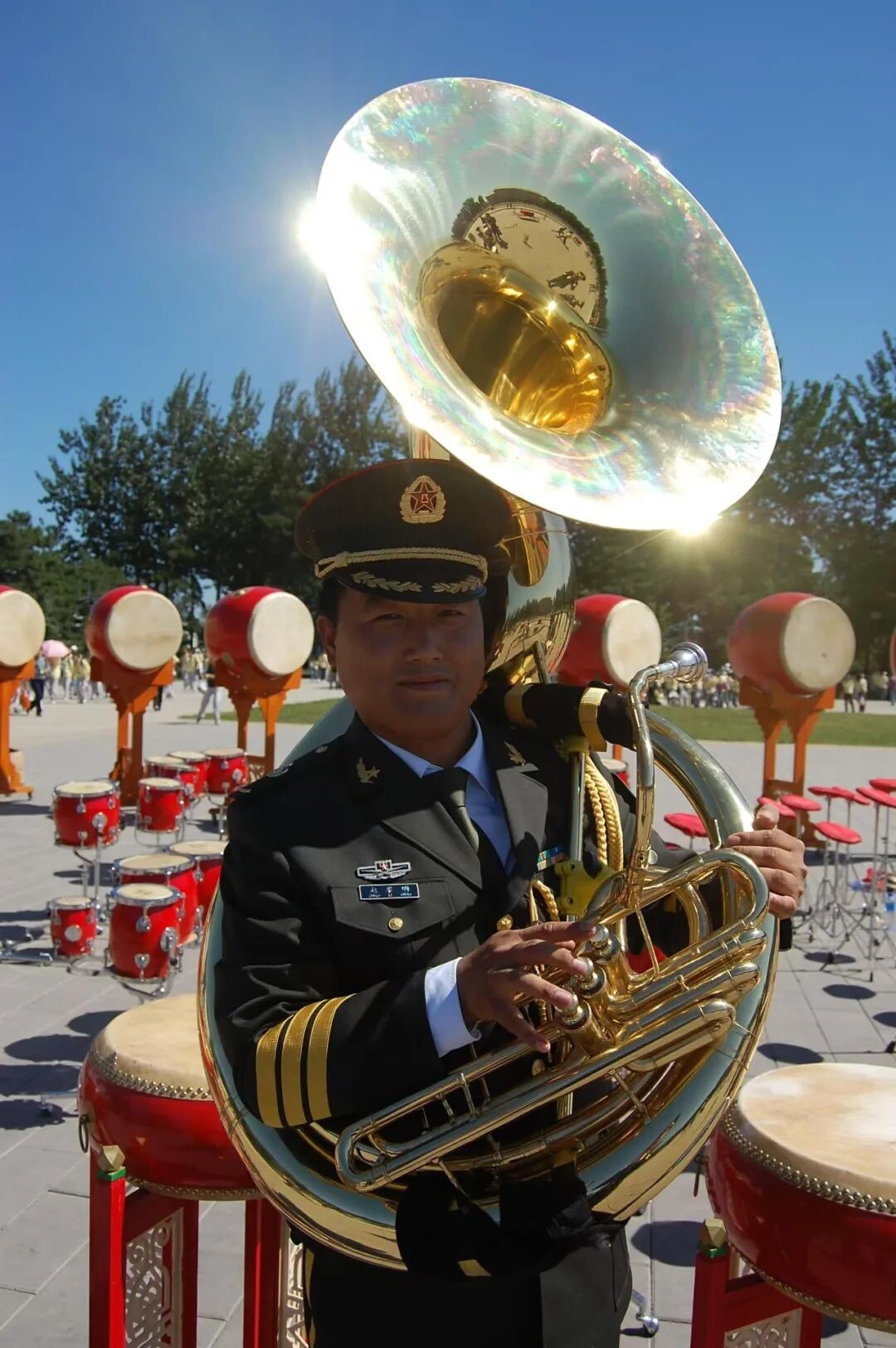 “训练肯定苦啊,但心里是真高兴。”回忆起第一次入选国庆阅兵联合乐队的经历,赵黎明的语气里仍带着激动。“当时心里又高兴又激动,还有点害怕,就怕自己干不好被刷下来!”所以他在训练时格外认真。每天训练超过12小时,这样的日子持续了半年多。腿站肿了、脸晒伤了、胳膊被乐器磨出了老茧,从早到晚,除了吃饭就是反复练习,没有一个人喊苦喊累。到最后,所有节奏和音符都成了肌肉记忆,闭着眼演奏也能分毫不差。