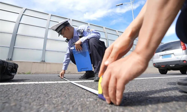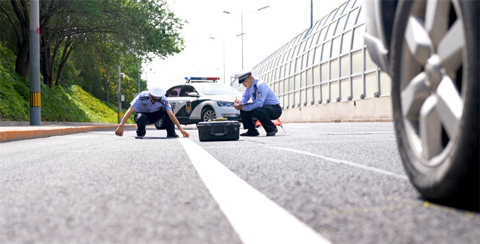 张雷从这一点入手,借鉴测绘摄影技术,将传统直线型标尺改良为平行四边形的标尺,在现场勘查过程中,只需把标尺摆在痕迹附近,用相机进行拍摄,将照片上传到其研发的“道路交通事故快速处置系统”内,系统可自动生成所需的勘验要素,从而有效缩减现场勘查的时间。