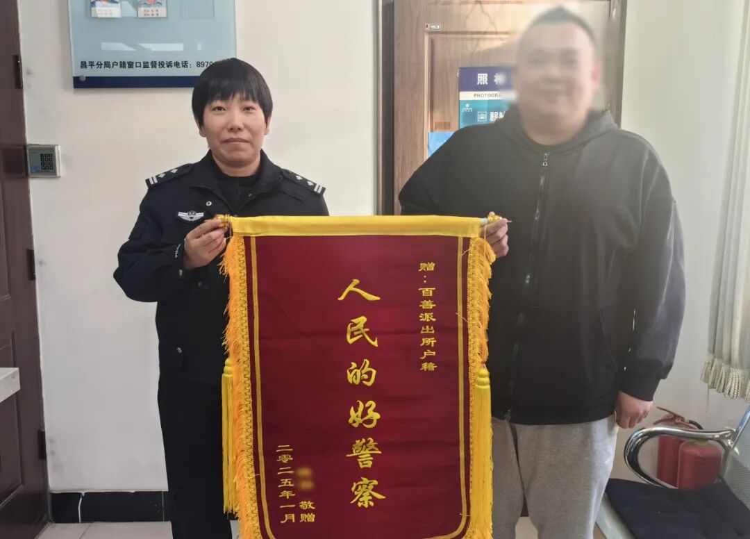 栾姝因细致工作收到辖区群众送来锦旗(图左)