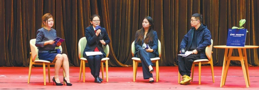 在座谈环节,朝阳区法院王四营人民法庭副庭长张妍发言中提到了“契约精神”,她建议家长和孩子订立使用手机的规则并遵照执行,“家长也要遵守规则,放下手机陪陪孩子”。