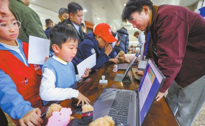 中国政法大学大二学生张学文是此次活动的领队,他和几名同学一起设计了两个网络陷阱体验区的游戏,通过游戏让孩子们了解网络风险的具体场景,提升防范意识。
