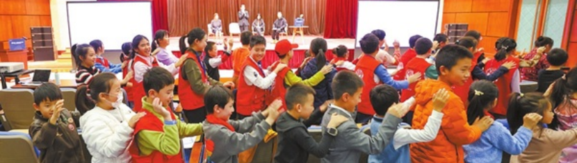 法官带领孩子们做互动游戏。