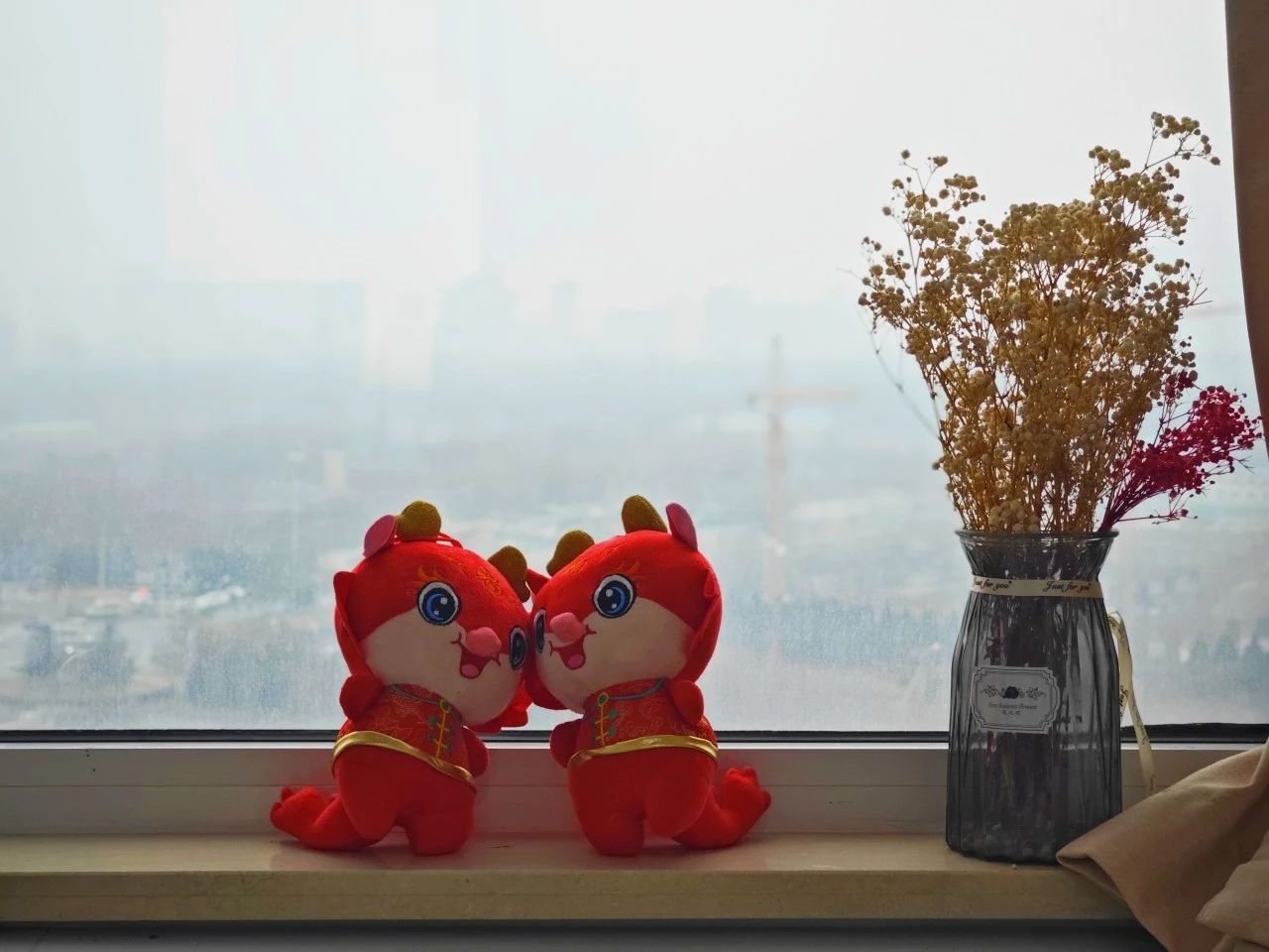 房间并没有因春节的到来而进行特别的布置,窗台上同事悄悄摆放的两只小龙玩偶,是这个甲辰龙年唯一的节日气息。