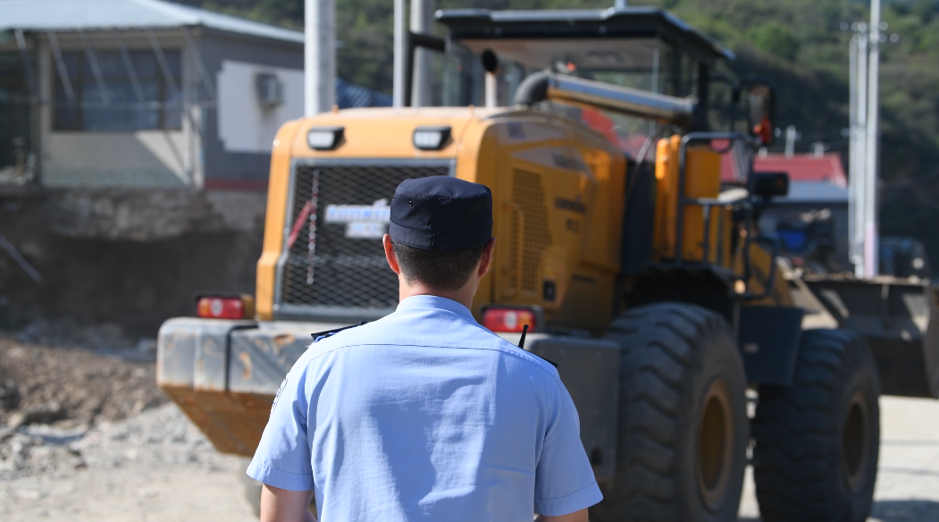 从空中俯瞰,秀丽的山水依旧郁郁葱葱,强大的生命力从泥沼中不断涌出,当走在新铺的柏油马路上,时间忽地变得紧迫,身边的颜色变得多彩,身着荧光马甲的建设者埋头苦干,一个形色匆匆的藏蓝身影穿梭其间,脚步从未停下。