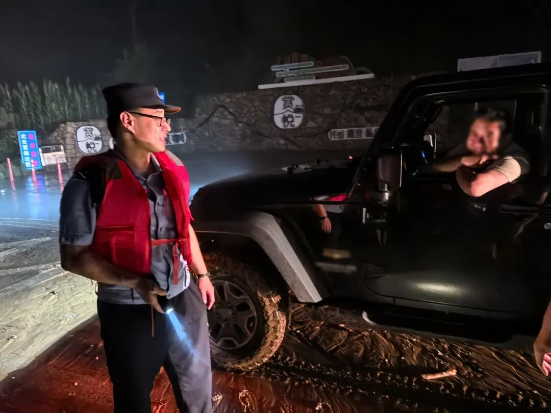 晚上10点多,当他们准备返回派出所时,发现上山的路也被洪水冲断。一行人陷入了“两头堵”的困境。
