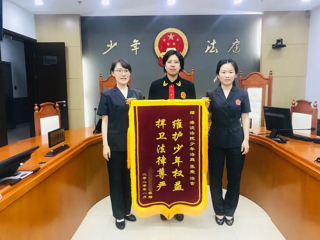 就在前不久,小桐在父母的陪同下手捧鲜花,怀揣某211高校的录取通知书,如约而至。在少年法庭,小桐及其父母一再向张莹致谢,他们表示:“回想事发当初,飞来的横祸让我们不知所措,就像天塌了一样,在我们最无助、纠结、担心的时候,是海淀法院少年法庭、是张法官您救了我们一家人、保护了孩子,更是救了孩子。感谢海淀法院有这样一个专为孩子们服务的法庭,有这样一群懂孩子、爱孩子、时时处处保护孩子的好法官。”