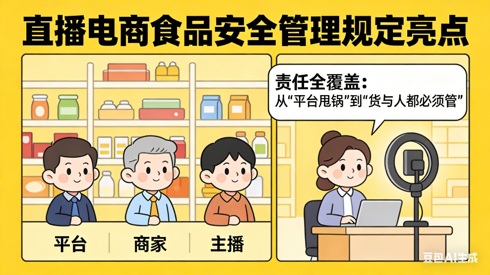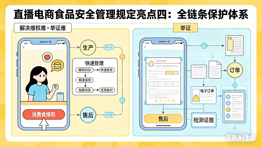 针对消费者在直播间买到问题食品后常遭遇“下播跑路”“举证无门”的困境,《规定》从渠道、证据、处罚三方面构建了保护网。