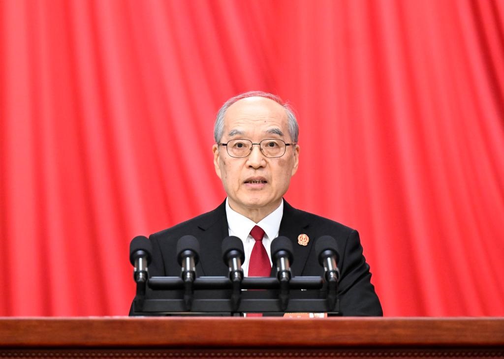3月8日,十四届全国人大三次会议在北京人民大会堂举行第二次全体会议。最高人民法院院长张军作最高人民法院工作报告。新华社记者 申宏 摄