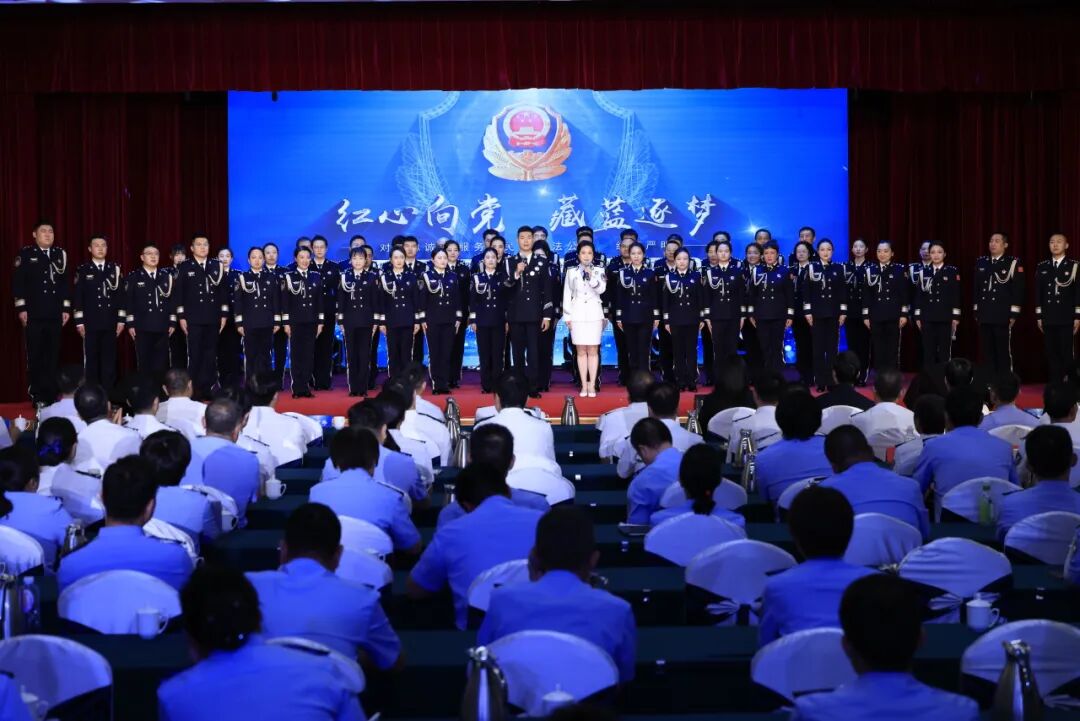 活动最后,首都监狱戒毒警官合唱团唱响《光荣集结在警旗下》,歌声中饱含监狱戒毒系统人民警察“以警旗为引领、以训词为指引”的坚定信念,抒发了广大民警坚守初心使命、厚植爱国情怀、永葆忠诚本色,为推进强国建设与民族复兴伟业踔厉奋发、再立新功的豪迈力量。