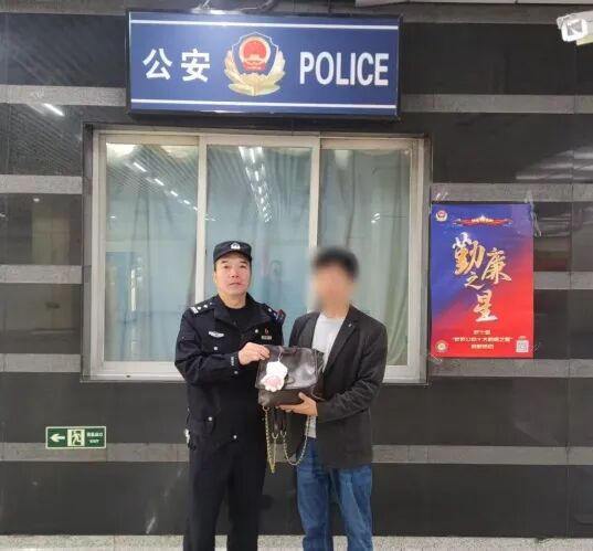 2025年10月15日上午,大屯站派出所民警相军田在地铁五号线立水桥站巡逻时,发现一个被遗落的挎包。他立即协调站方进行失物广播,同时根据包内物品查找线索,最终成功联系上失主并顺利归还挎包。失主在领回物品后,对民警热心高效的工作态度表示由衷感谢。
