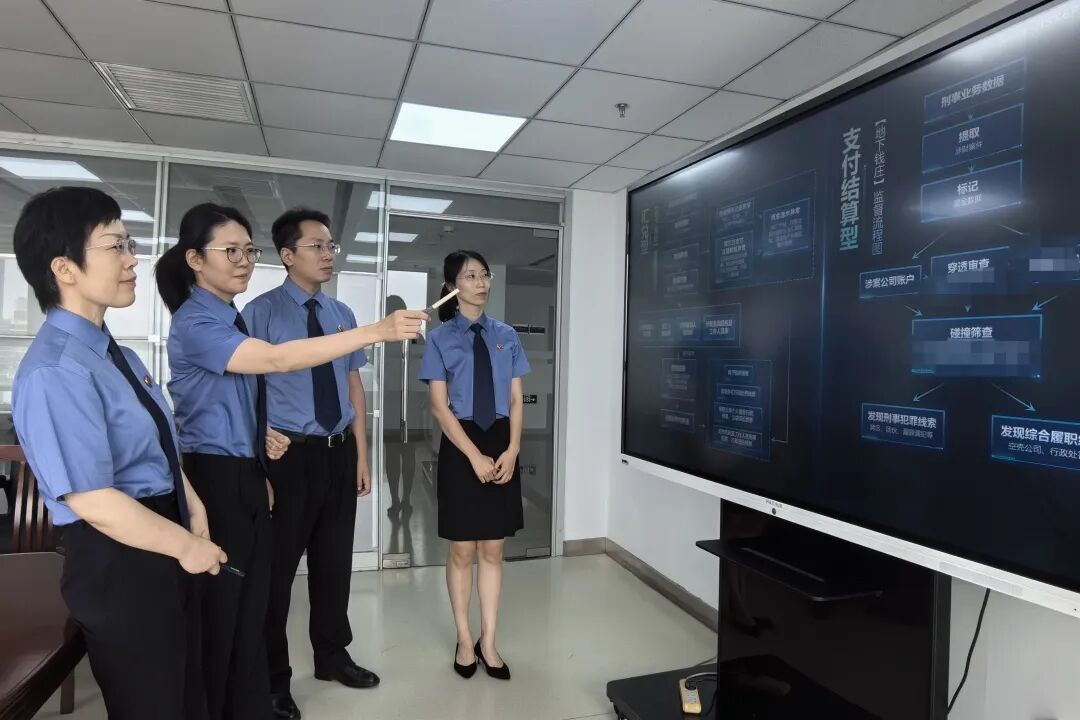 北京市检察院第二分院在检察履职中不仅深挖出三个地下钱庄,还通过深入剖析其运行规律提炼出针对地下钱庄的监督规则,依托检校合作机制组建科研团队,将监督规则转化为可量化的算法逻辑。2024年5月,在北京市检察院的统筹指导下,“地下钱庄惩治大数据法律监督模型”终于成功落地。截至目前,全市检察机关适用该模型已推动刑事立案30余人。