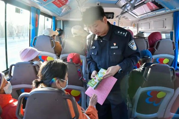 其中,4辆喷涂有“全国交通安全大篷车”彩绘的公交车从通州区东夏园综合交通枢纽启程,一路穿行30余个村庄与地铁站点。车上交警边走边讲,用通俗易懂的语言向乘客讲解酒驾醉驾、无证驾驶等交通违法行为的危害。