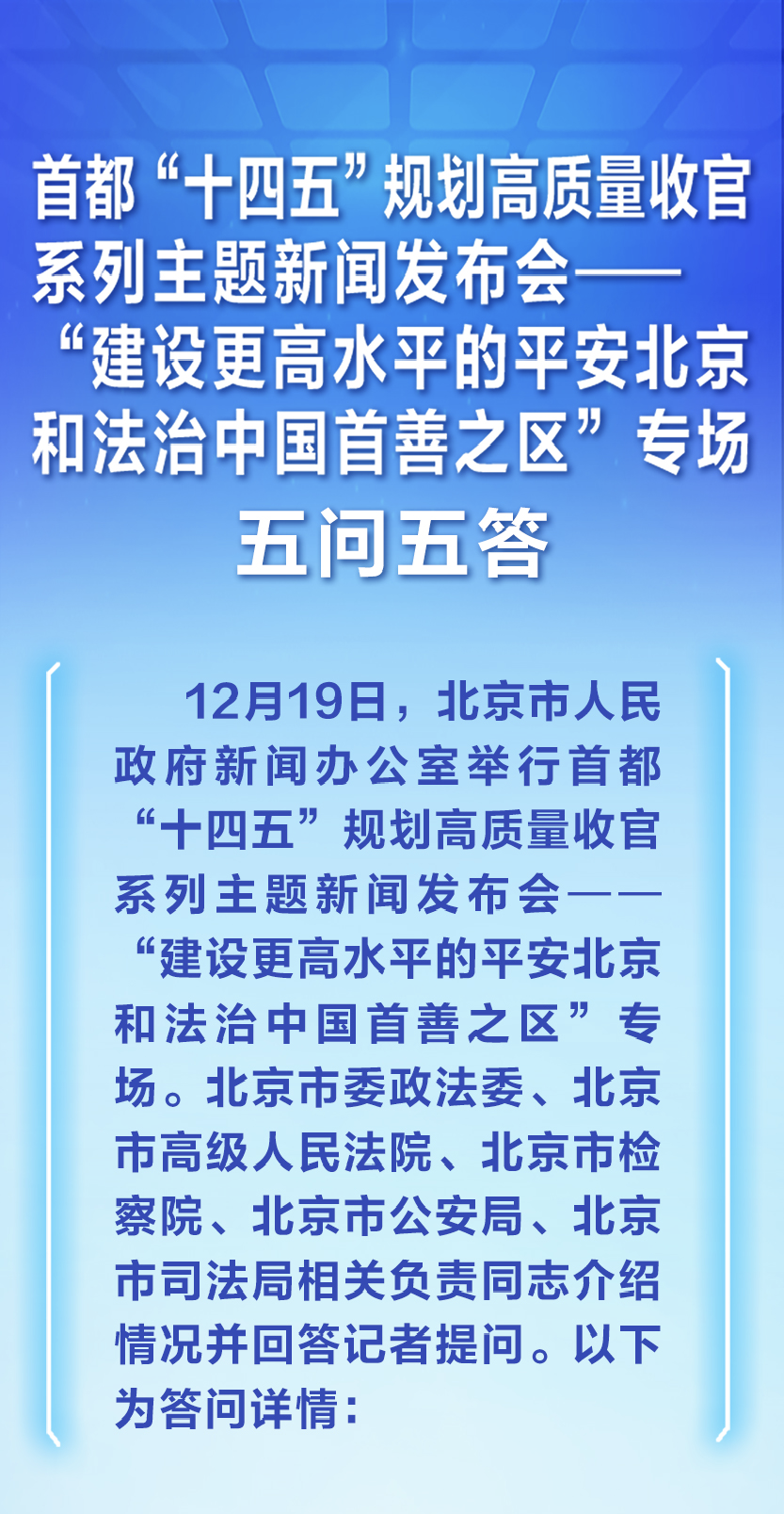 首都“十四五”规划高质量收官系列主题新闻发布会——“建设更高水平的平安北京和法治中国首善之区”专场五问五答来了