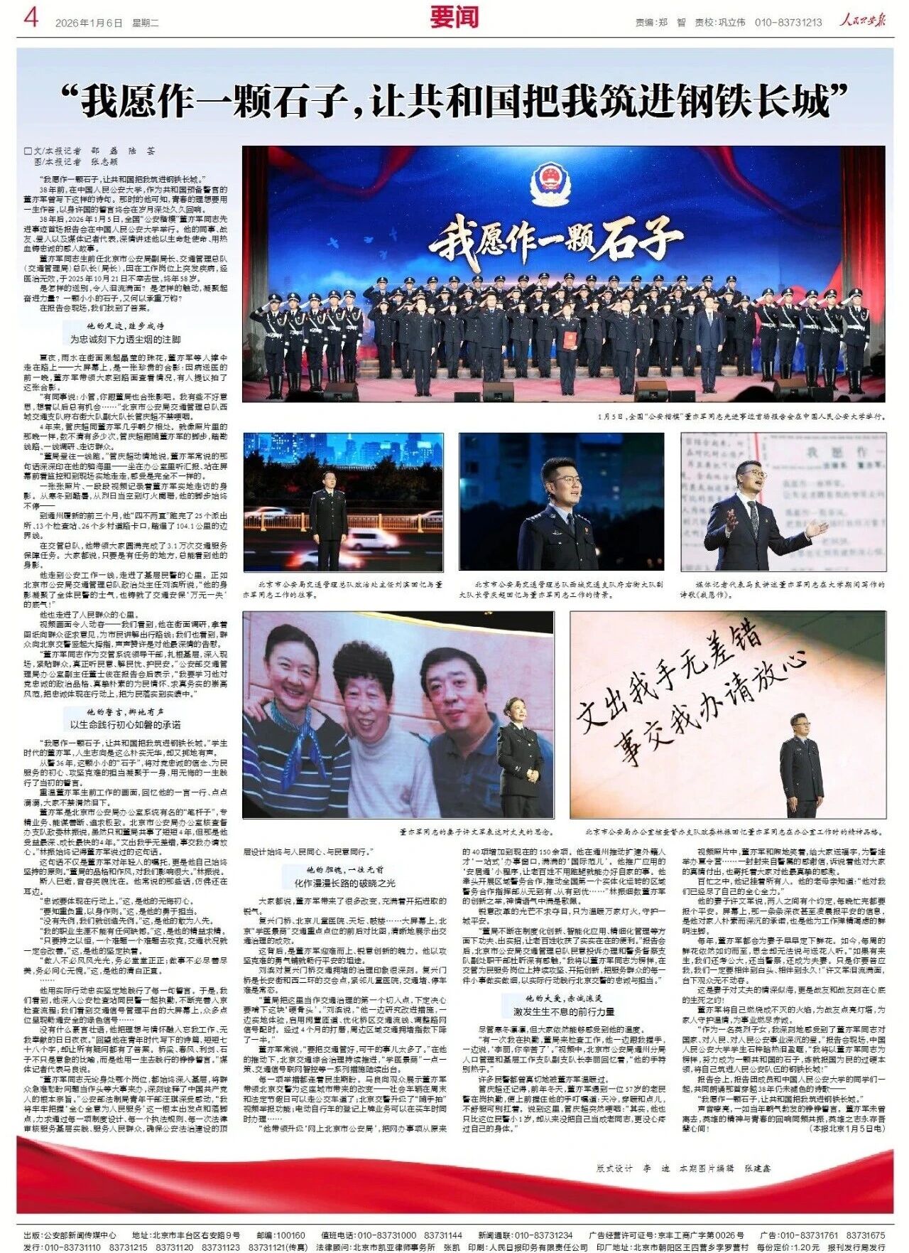 他走到公安工作一线,走进了基层民警的心里。正如北京市公安局交通管理总队政治处主任刘滨所说,“他的身影凝聚了全体民警的士气,也铸就了交通安保‘万无一失’的底气!”