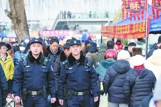 “爆汁冰糖柚,十块钱三斤”“现煎肉蛋堡,五块钱一个”……天刚蒙蒙亮,北京昌平沙河大集的吆喝声便穿透薄雾而来。春节临近,这个占地7万平方米、拥有1200余家商户的网红大集,单日客流超万人次,是当地群众常来置办年货的地方。1月28日,记者跟随北京市公安局昌平分局民警走入涌动的人潮,看看民警们如何在细微处筑牢安全防线。