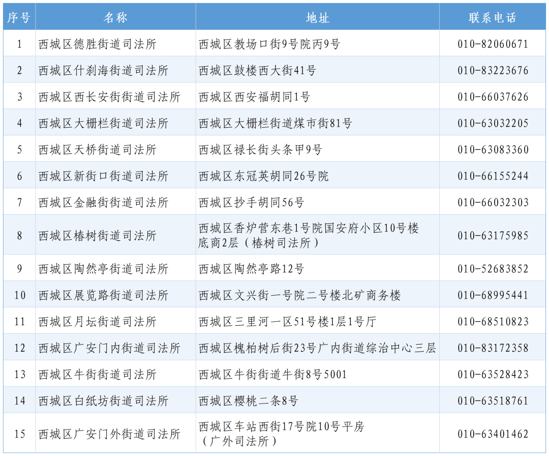 344个司法所的地址和联系电话