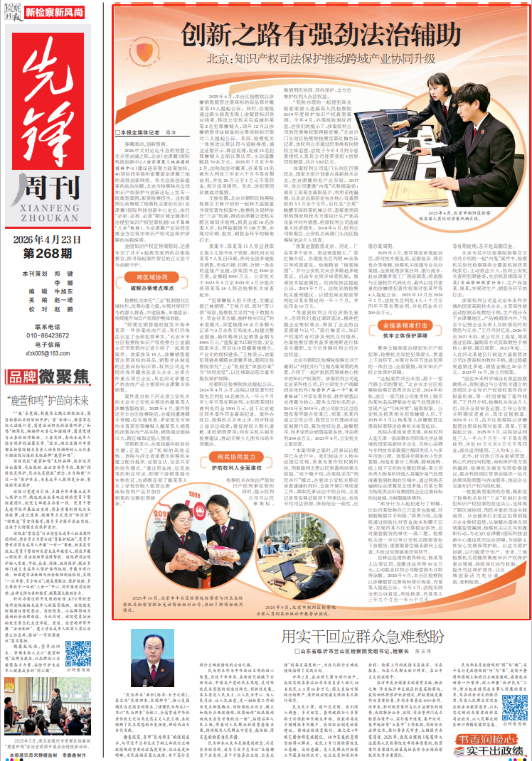 一桩桩典型案例的办理,既彰显了检察机关依托“三必”机制打击侵犯知识产权犯罪的坚定决心,也体现了跨区域协同、刑民并重的司法实践成效。从全链条打击违法犯罪到提示企业维权追偿,从破解办案难点到堵塞监管漏洞,检察机关以扎实的履职行动,为北京(京津冀)国际科技创新中心建设筑牢法治屏障,为创新主体安心发展保驾护航。以法为盾护创新,以行践诺守知产。未来,三地检察机关将继续聚焦知识产权保护重点领域,持续深化协作机制,提升司法保护质效,让区域创新活力充分涌流、竞相绽放。