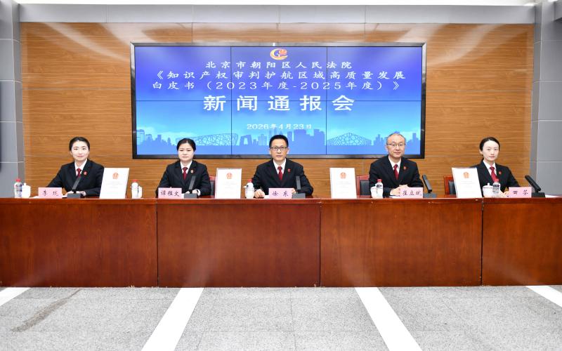 4月23日,北京朝阳法院召开新闻通报会,发布《知识产权审判护航区域高质量发展白皮书(2023年度-2025年度)》,通报近三年知识产权民事案件审理概况、特征趋势、举措成效及典型案例。