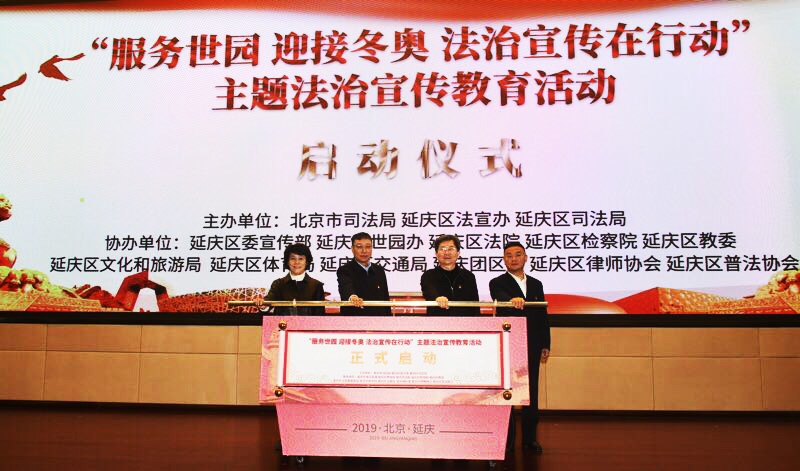 为深入学习贯彻习近平新时代中国特色社会主义思想,特别是习近平全面依法治国新理念新思想新战略,进一步落实中央全面治国委员会第二次会议和市委全面依法治市委员会第一次会议精神,切实提升法治宣传服务中心工作能力水平,积极营造世园会、冬奥会良好法治氛围,4月2日上午,北京市司法局联合延庆区法宣办、区司法局等单位,举办“服务世园 迎接冬奥 法治宣传在行动”主题宣传活动启动仪式,全面启动本市法治宣传服务世园、冬奥系列活动。市委全面依法治市委员会守法普法协调小组副组长、市司法局党委书记苗林,延庆区委书记穆鹏,市委全面依法治市委员会守法普法协调小组成员、市司法局副局长马燕,延庆区副区长祖宇及延庆区委宣传部、延庆区司法局等相关单位的负责同志和全市300余名专兼职普法志愿者团队代表等参加活动。