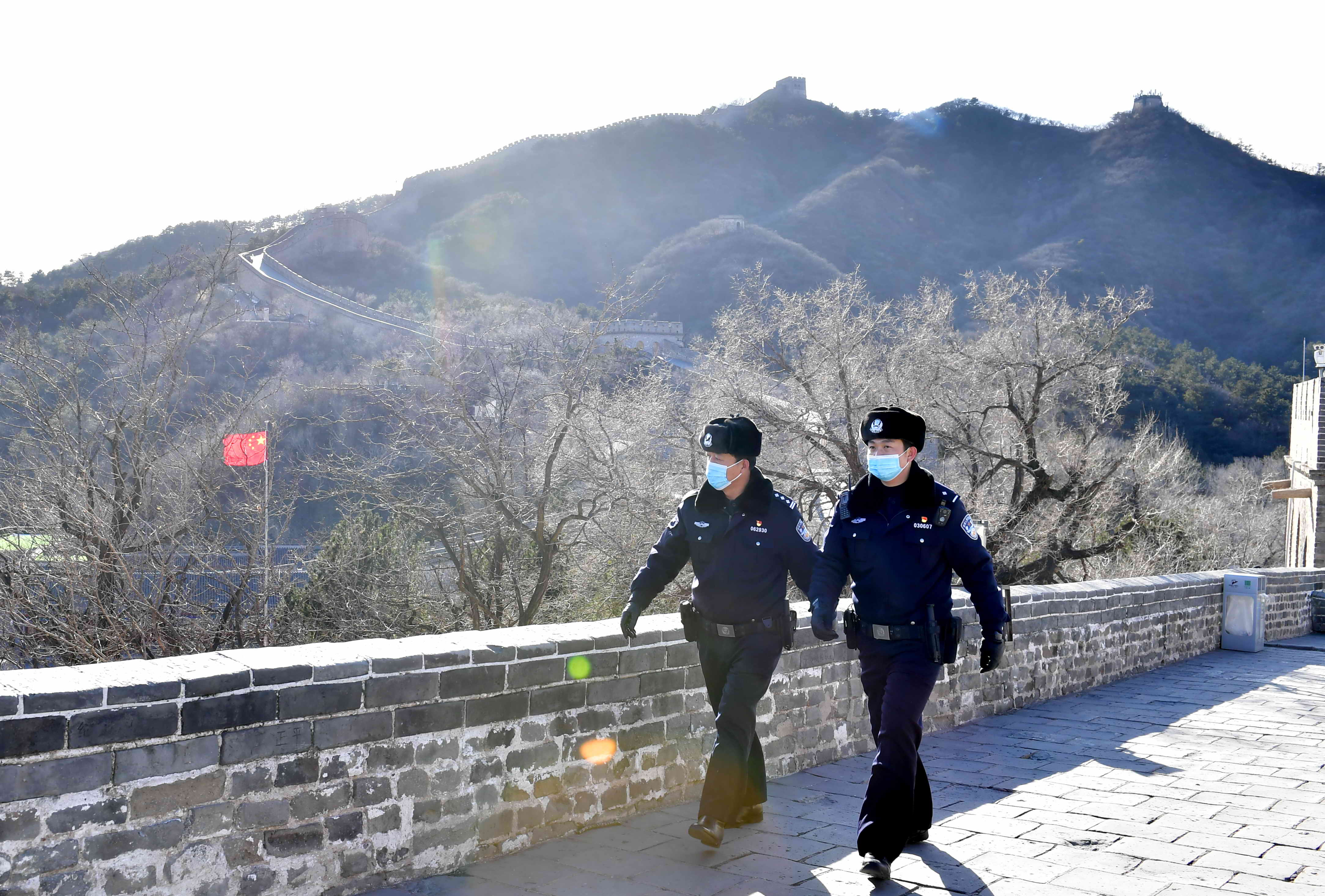八达岭景区每天9:00正式开放。小编看到,早上8:30,延庆公安分局八达岭派出所的民警们就已经到岗,开始了一天的工作。目前,景区开放的游览区域为南七楼到北八楼,长度3公里,这是派出所民警日常巡逻的主要路段。这段路虽然不长,但在蜿蜒陡峭的长城上走上一圈,普通游客也已是气喘吁吁。而对于民警来说,他们不仅要身着厚重服装,还要佩戴警用装备,这更是一种考验。