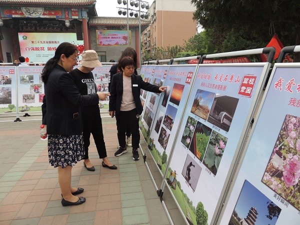 活动中,石景山区残联9个街道残疾人职康站将精心制作的珠绣、钻石画、手工编织、剪纸等6大类,300余件12个品种进行了展示和销售;五里坨医院、石景山区八宝山社区卫生服务中心、首都医科大学附属北京康复医院等7家单位进行了成人康复政策、康复项目的宣传,发放宣传品3100余份。部分在北京市平台上线评度高的厂家,集中展示辅具,让残疾人了解、体验智能和高性能辅具;场地内,还展示了“我爱祖国,我爱石景山”残疾人及志愿者摄影展近百幅作品。
