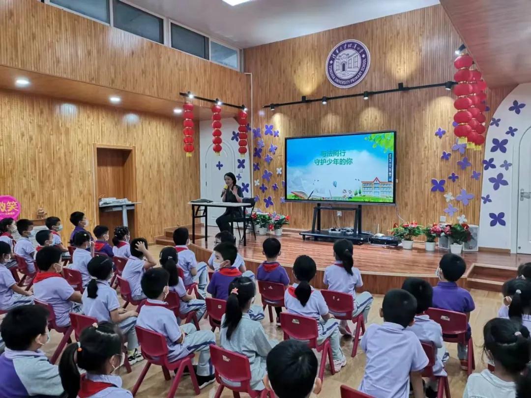 在前不久召开的北京高院“我为群众办实事”新闻通报会上,“上好开学法治第一课”被列入“我为群众办实事”九大重点项目之一。为深入推进这项工作,近日,北京高院未审庭法官刘靖靖走进清华附小CBD实验小学(二校区),为该校二年级的200余名学生,上了一堂精彩生动的《与法同行,守护少年的你》法治教育课。