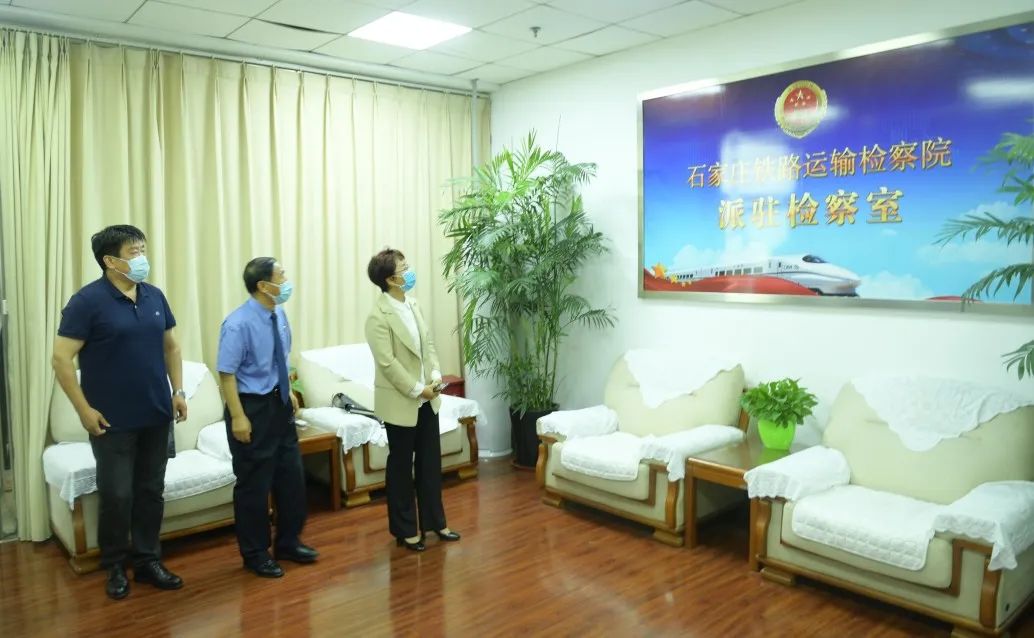 ▲图为市检四分院党组书记、检察长田向红带队赴石家庄铁检院调研,参观派驻检察室