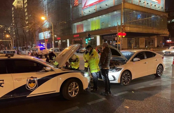 大年三十20时许,市民黄先生下班回家路过长椿街时,车辆突然断电,抛锚在路口内的机动车左转弯待转区内。晚间车辆停在路口中间不仅对正常通行有一定影响,更是存在发生事故的安全隐患。