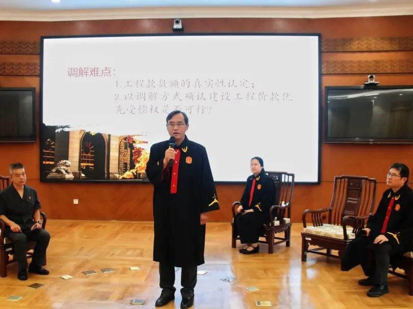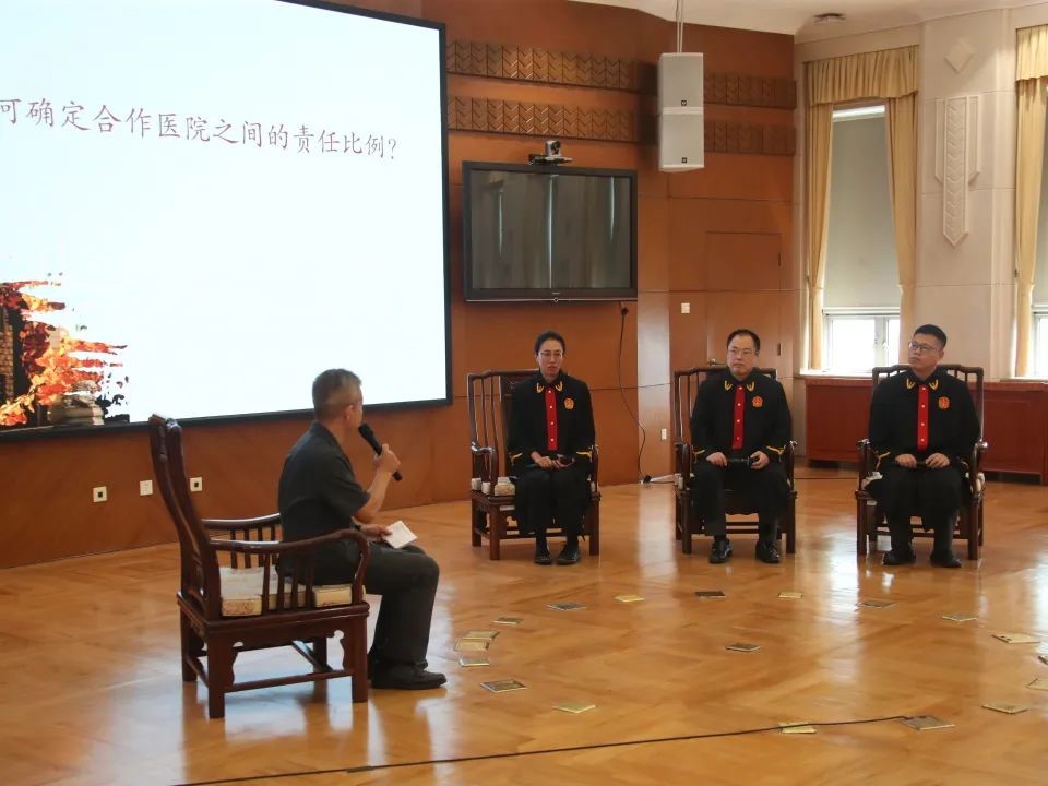 其中,民一庭庭长王金龙在某建设工程施工合同纠纷一案中,打破常规流程,运用扎实的法律功底与建设工程专业知识,仔细核算工程款,最终促成各方达成调解,从源头上避免后续隐性诉讼,助力“保交楼”平稳实现;面对标的额仅5000元的案件,民三庭法官杨光深知该案关乎务工老人的生计与救命医药费,她没有机械适用举证责任分配规则,而是加强调查取证还原事实,同步开展调解工作引导当事人主动履行,以“小案不小办”的态度守护弱势群体权益。立案庭副庭长闵蕾则以“窗口”视角分享申诉申请再审案件化解心得,她认为,窗口是司法服务的前沿,也是传递司法温度的纽带,窗口工作化解的是群众疑惑,体现的是司法温情。