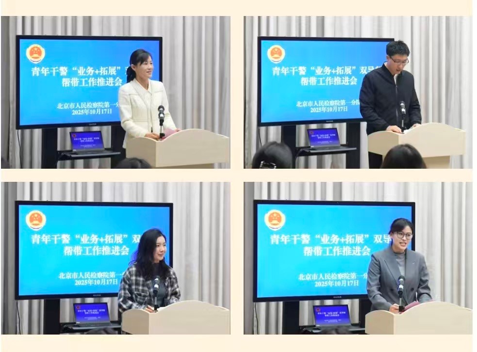 近期,市检一分院为深入落实《北京市新录用公务员三年实践锻炼行动计划》,启动青年干警“业务+拓展”双导师帮带工作。10月17日,市检一分院召开此项工作推进会,党组成员、政治部主任袁煜驰在推进会上提出,业务导师要做好“传帮带”工作,当好“履职领路人”。