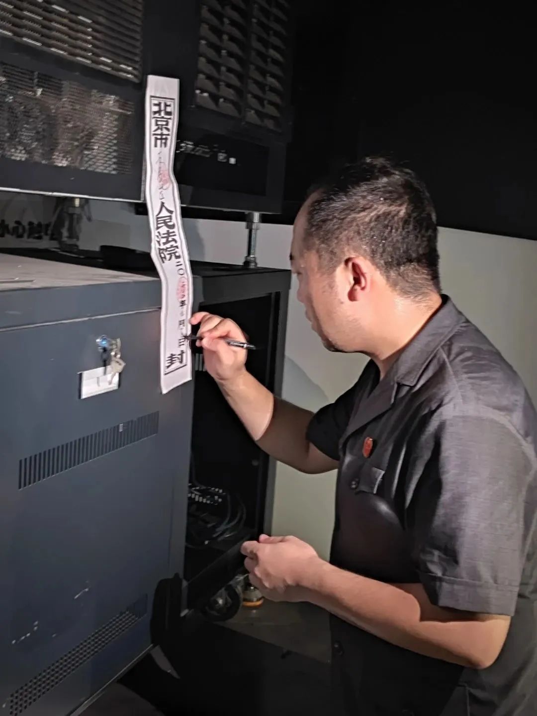 执行干警赶往现场,发现该影院正常经营,考虑到该影院对影视设备的经营性需求并保障其对设备的异议权利,在经过申请人同意后,执行人员采用在设备上贴封条的“活封”形式,允许该电影院暂时使用影视设备,并且对将该批影视设备随意转移、毁损的法律后果予以阐释说明。电影院工作人员在执行干警释法说理后主动配合,引领执行干警前往放映室查点影视设备。因放映室空间狭窄黑暗、空气流通性差、潮热难耐,执行干警只能相互配合打灯、贴封条、做笔录,所有人都汗流浃背,封条甚至在张贴前就已经被汗水打湿,工作结束才发现制服完全湿透。