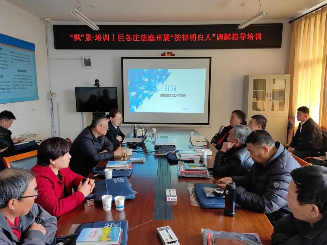 依托“法律明白人”普法驿站,巨各庄法庭打造“枫”景培训品牌,回应人民群众对司法公正公开的关注和期待,提供“订单式”解纷培训,定期开展调解指导培训活动。