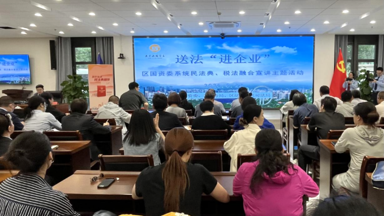 5月23日,石景山区司法局联合区国资委、区税务局、区人民法院共同开展区属国企法治需求调研暨“民法典宣传月”送法进企业主题活动。区国资委党委委员、副主任张鹏,区税务局党委委员、总会计师张楠,区司法局党组成员、副局长安婧婧,区属国有企业相关负责人,企业财务、法务、风控等相关部门工作人员共计150余人参加活动。