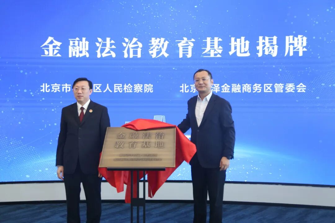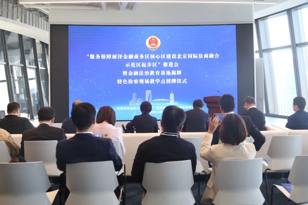丰台区检察院党组书记、检察长刘泽锋,北京丽泽金融商务区管委会主任李声,共同为金融法治教育基地揭牌,这标志着专业化、规范化、体系化的金融检察服务与预防机制在丽泽金融商务区正式落地生根。金融法治教育基地由丰台区检察院与丽泽金融商务区管委会联合打造,承载着服务保障丽泽金融商务区核心区建设北京国际法商融合示范区起步区的重要使命。基地选址丽泽SOHO云客厅这一城市新地标,寓意法治与金融的深度融合,在这里,来访者不仅能沉浸式感受法治的庄严厚重,更能近距离领略丽泽商务区蓬勃的创新动能。金融法治教育基地也将成为丰台区推进丽泽金融商务区核心区建设北京国际法商融合示范区起步区的“法治服务窗口”,真正实现“法治赋能商业,商业反哺法治”的良性互动。