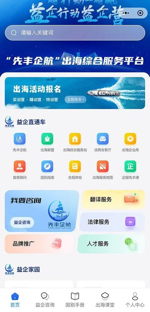 丰台区持续完善企业出海数字化服务体系,不断夯实线上服务支撑能力。为精准对接企业出海数字化服务需求,1月30日,“先丰企航”出海综合服务平台小程序正式发布,作为北京国际法商融合示范区线上无限空间的核心服务载体,有效织密涉外服务网络、延伸服务触角。平台联合36家专业服务机构,提供目标国法律法规解读、投资合规诊断、知识产权保护等11类在线咨询服务,搭载“丰小智”出海数字人智能化应答,汇总103个国家的国别指南,整合丰台园13个海外综合服务站、95个出海服务点位和25个海外仓,由109名律师组成线上律师库和47名各领域专家组成专家服务团,形成“线上线下协同、境内境外联动”的服务闭环。自小程序推出以来,累计服务用户千人次,成为企业出海便捷高效的“随身线上服务站”。